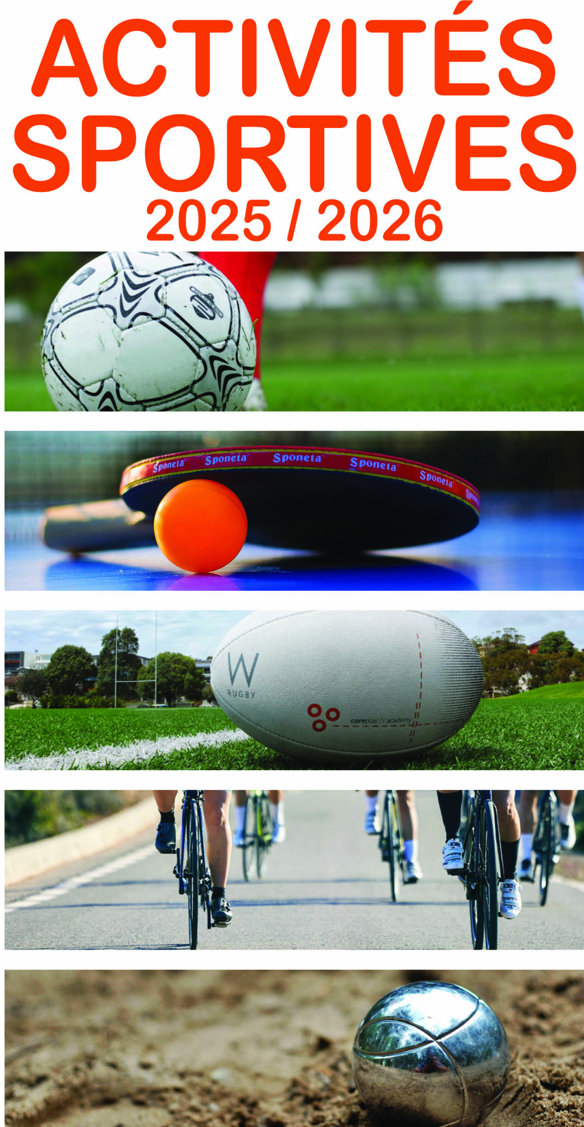 - Sports collectifs : football, rugby, basket (du baby au senior), pétanque.