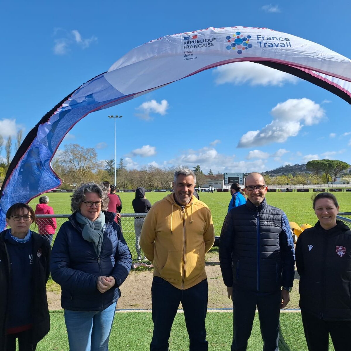 Ce matin Lisanne de Jonge ( premier adjoint au Maire) et Didier Lambert( deuxième adjoint au Maire) étaient présents aux côtés de Christophe De Lamarlière (Président Rubgy 4 Cantons BHAP) pour le lancement de la rencontre « Du stade vers l’emploi » organisée par France Travail Pro en collaboration avec le club de rugby 4 Cantons.